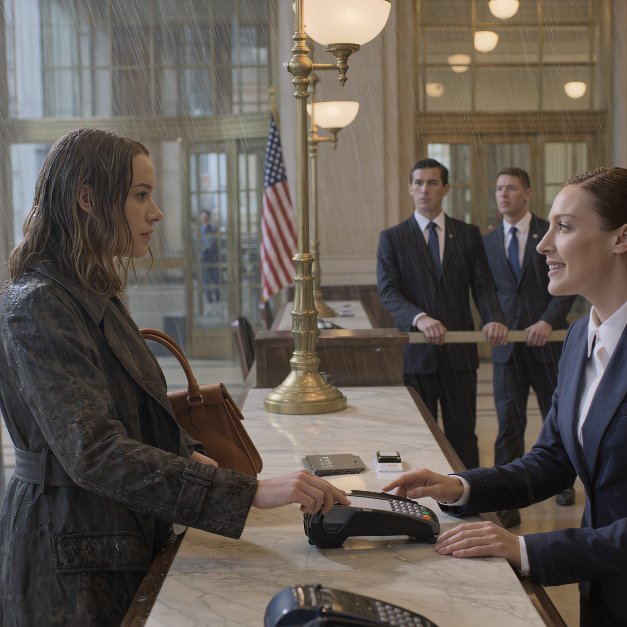 She picked up the card and I watched her expression shift from polite patience to confusion to something else entirely. Her face went pale. Her hands began to tremble slightly. She looked at the card, then at me, then back at the card again. Without a word, she pressed a button under her counter.