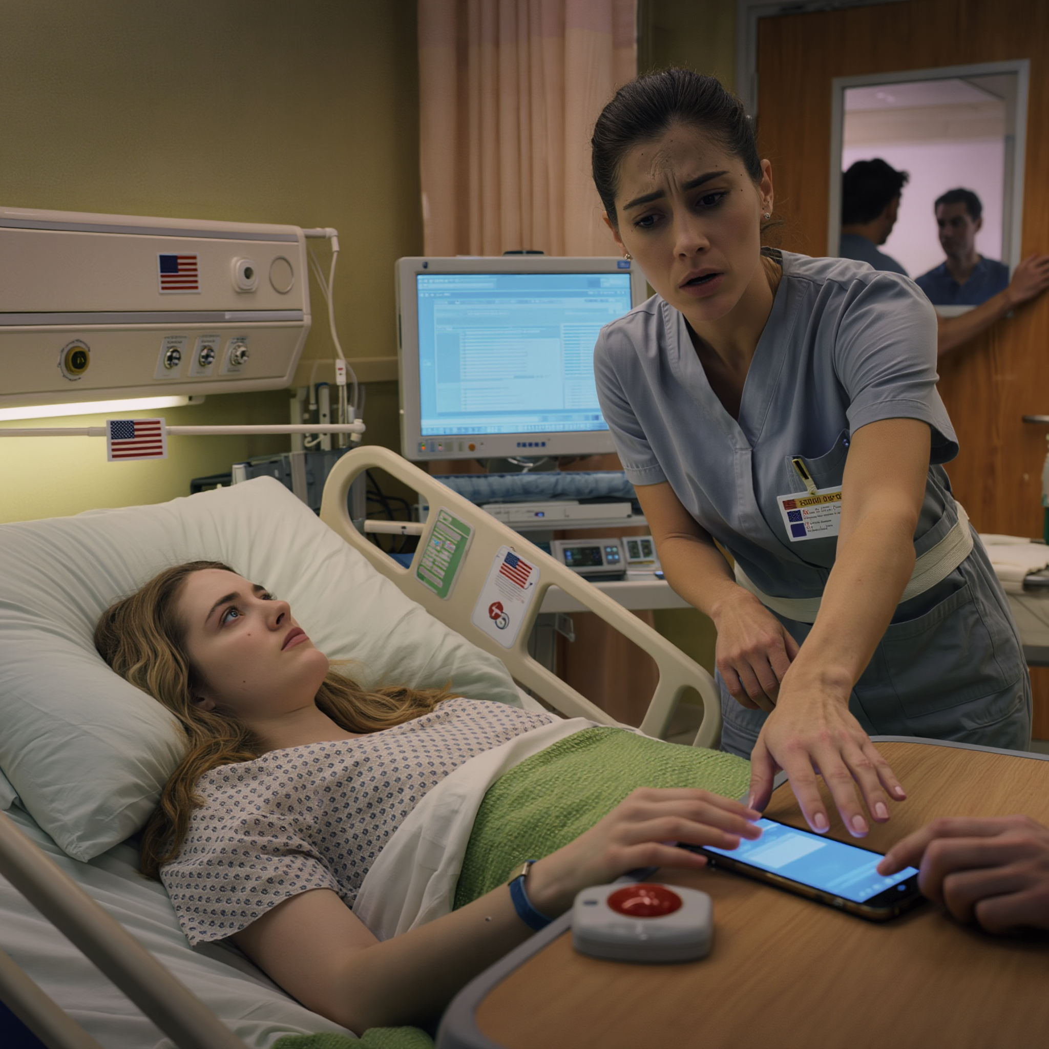 “Are you feeling unwell?” The young woman stepped closer, concerned. She smelled faintly of disinfectant and damp cloth. “I’ll call the nurse immediately.”